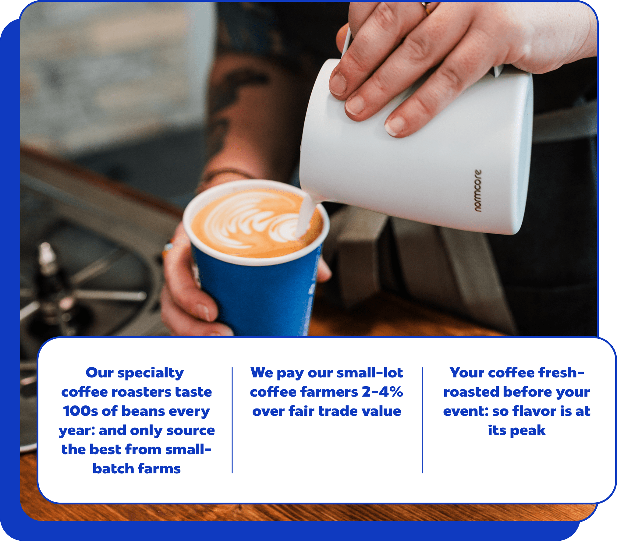 “We handpick exceptional beans, partner with sustainable farms, and roast each batch fresh so your coffee arrives bursting with flavor and good vibes.”