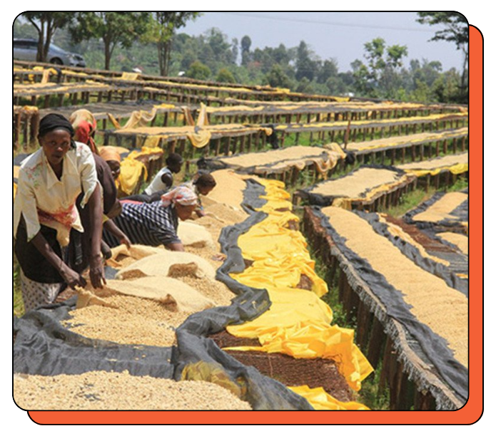 Each cherry is handpicked at peak ripeness and delivered to the washing station, where the Cherry Clerk meticulously sorts for quality — only the densest, ripest fruit make the cut. The beans are fermented for 16 to 24 hours, then soaked in clean mountain water before being dried slowly on raised beds for up to three weeks. This careful, deliberate process gives the coffee its sparkling acidity and signature “Nyeri punch.” 💧🌞