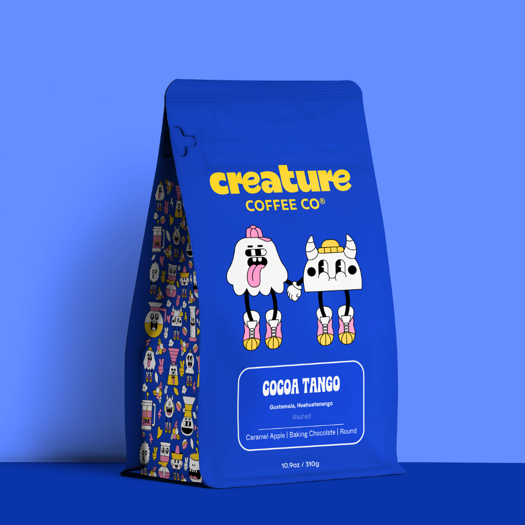 Cocoa Tango returns for another spin — and this year’s lot has even more rhythm. Grown by smallholder producers in Guatemala’s famed Huehuetenango region, this washed coffee showcases everything we love about the highlands: crisp clarity, structured sweetness, and layers of cozy, nostalgic flavor.